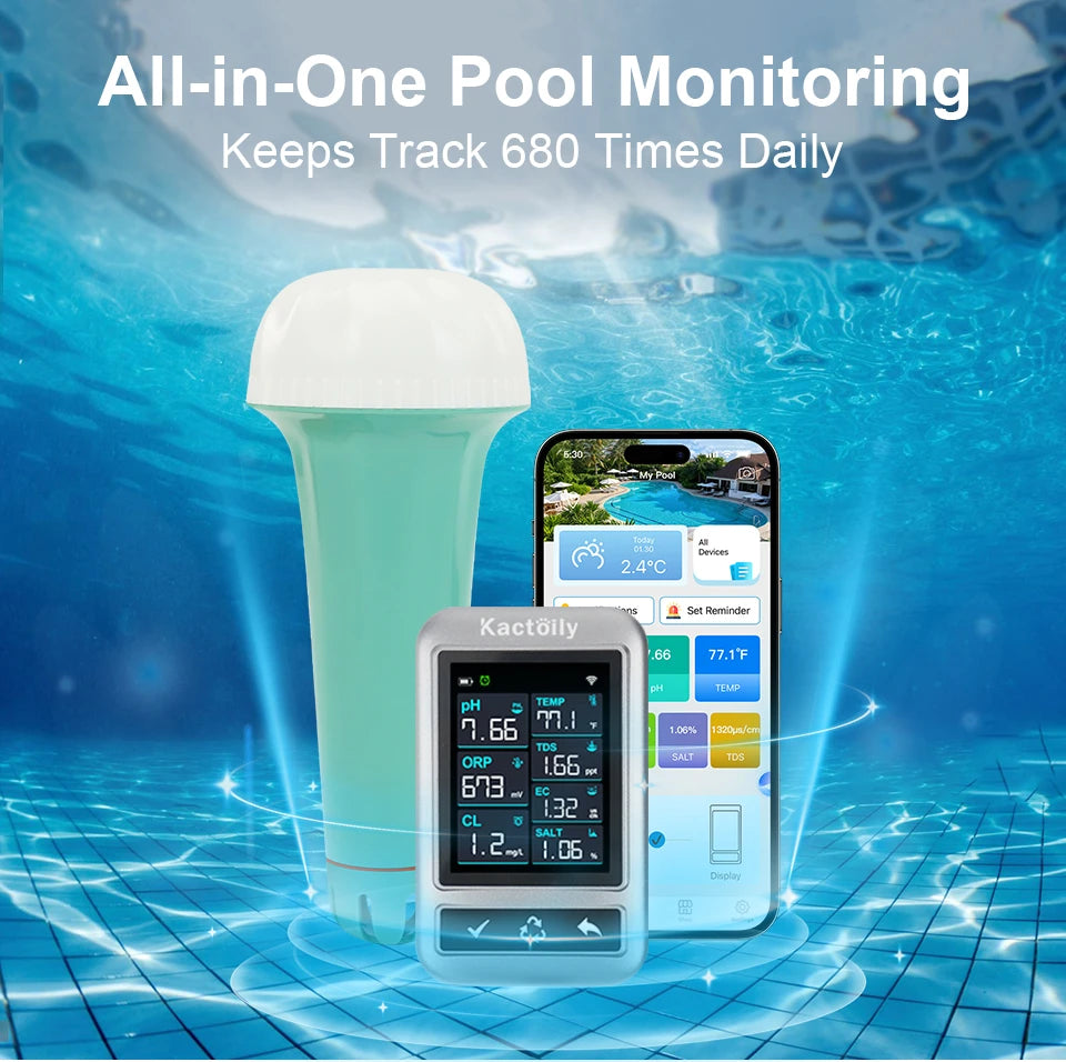 Keep an eye on your pool water 24/7. With continuous monitoring that checks your water 680 times a day, and real-time updates, you can easily track water conditions anytime through the app and maintain perfect pool balance.